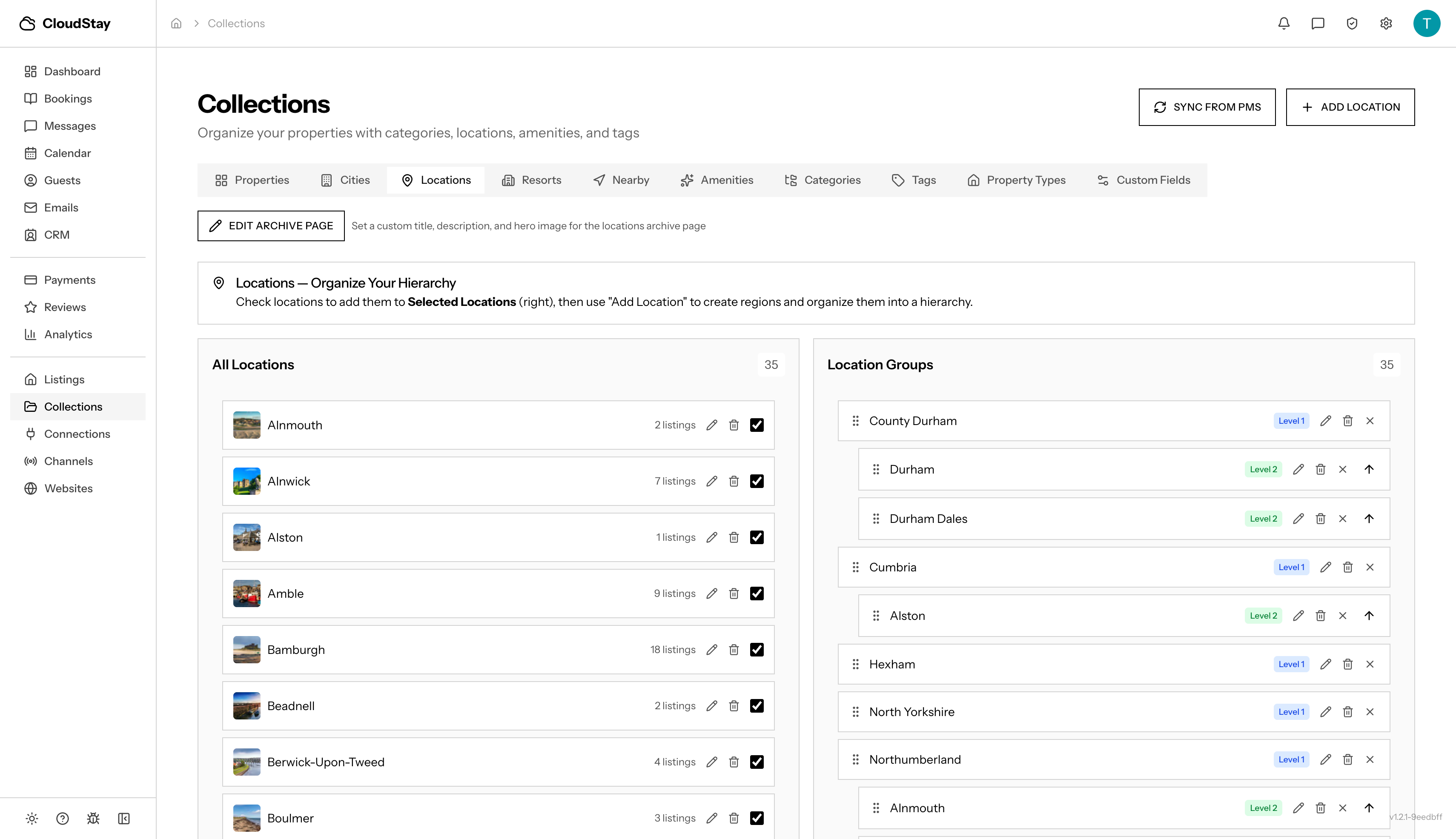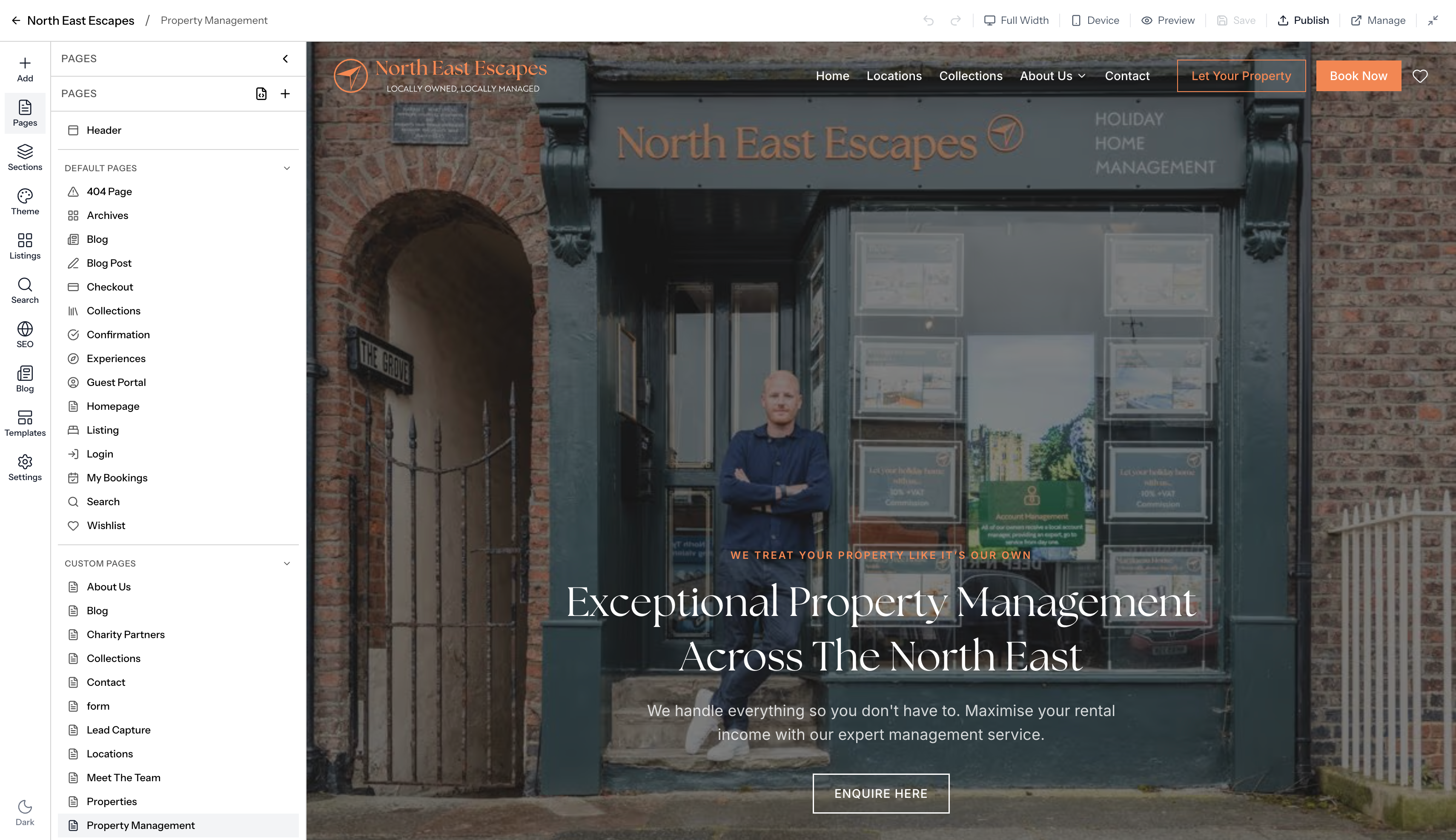Design your website, manage bookings, organize collections, and build custom pages — all from a single dashboard connected to your PMS.